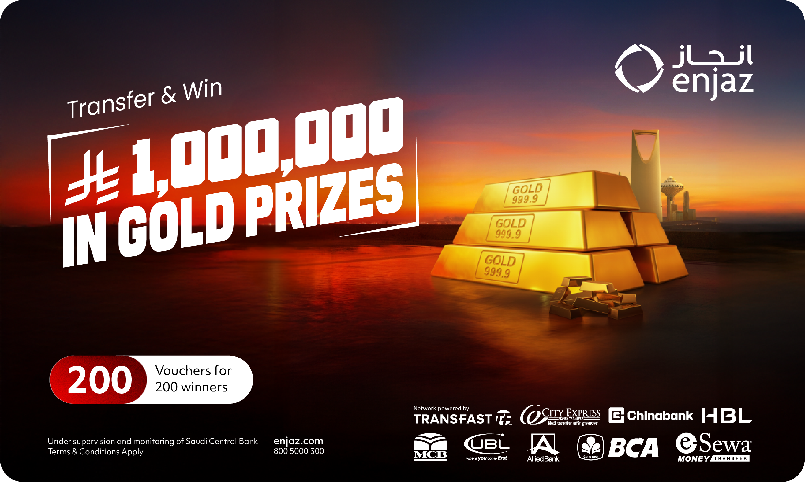 Transfer through any of the participating partners to the eligible countries listed below during this campaign, and you'll be entered into a draw to win a gold voucher with over 200 vouchers available.